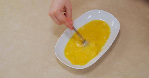 6.سپس هر دو طرف را به تخم‌مرغ زده شده آغشته کنید.